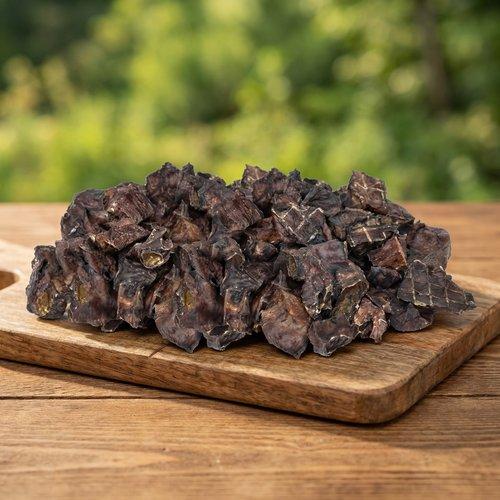 Легкое конское от Gavkraft — премиальное натуральное лакомство для собак с легкой пористой структурой и мягким мясным ароматом. Благодаря своей текстуре продукт легко разламывается на небольшие кусочки и идеально подходит для дрессировки, прогулок и ежедневного поощрения. Это удобный формат для владельцев, которые ценят натуральный состав и практичность. Полезность Удобно дозируется, подходит для обучения и частого поощрения. Натуральный животный белок и легкая структура делают продукт особенно практичным в ежедневном использовании. Рекомендации по использованию / для каких пород Подходит для собак всех пород. Малые породы — в мелко ломанных кусочках. Средние породы — небольшими или средними кусочками. Крупные породы — можно давать более крупными фрагментами. Идеально для дрессировки и прогулок. Противопоказания Не рекомендуется при индивидуальной непереносимости конины. С осторожностью при строгих ветеринарных диетах и чувствительном ЖКТ. При первом введении в рацион давать небольшое количество. Состав 100% легкое конское сушеное. Нормы кормления Использовать как поощрение: малые породы — до 10–15 г в день средние породы — до 15–30 г в день крупные породы — до 30–50 г в день Учитывать общее количество лакомств в рационе.